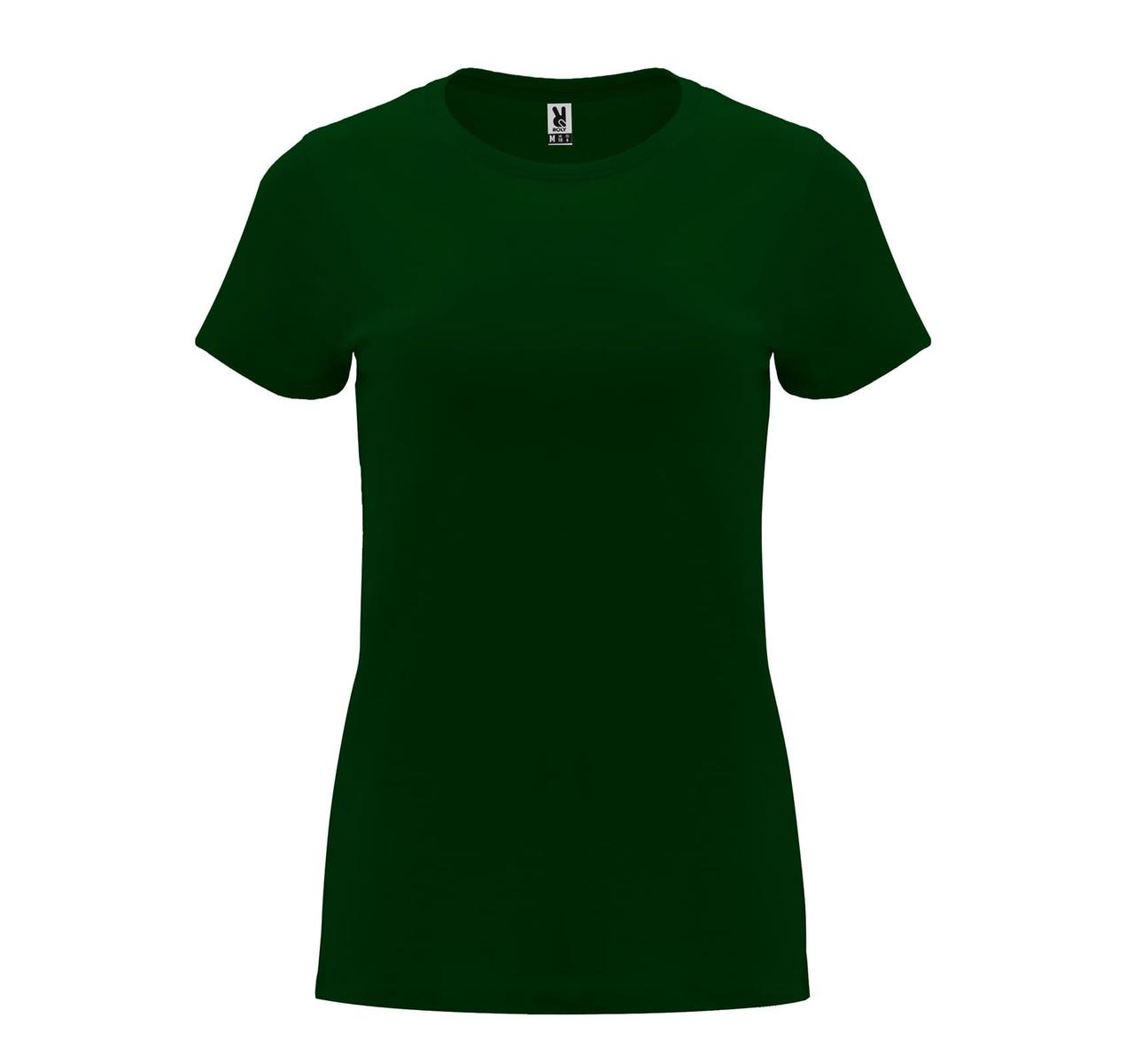 Жіноча приталена футболка з короткими рукавами. Кругла горловина в рубчик 1 x 1. Посилені закриті шви горловини. 100% бавовна, 170 г/м².